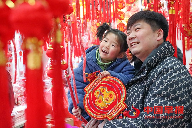 中国早报 河南讯(特约记者 李新义)1月26日,河南省开封市尉氏县滨河路的年货市场上各式各样琳琅满目的大红灯笼、春联、福字、中国结等具有中国传统喜庆元素的新年饰品十分俏销,人们纷纷前来选购年货,喜迎蛇年春节的到来。