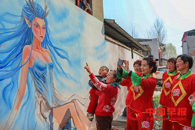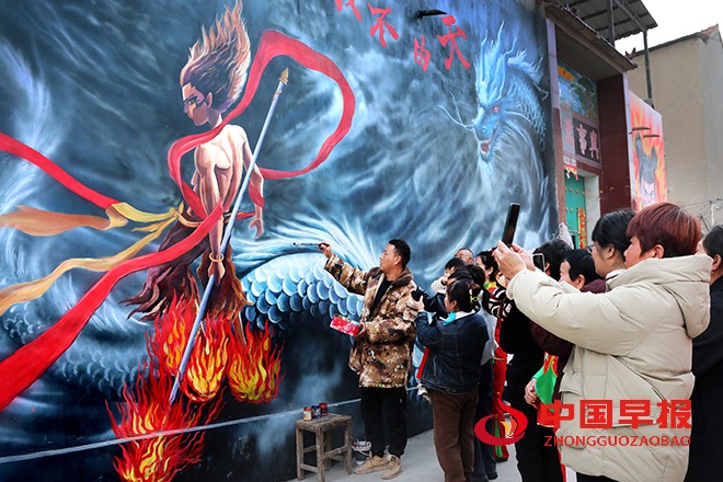 中国早报 河南讯(记者 赵玉虎 特约记者 李新义)3月10日,河南省尉氏县朱曲镇西街村,村民们三五成群,聚集在一幅幅哪吒主题的墙画前,兴奋地拍照、打卡。镜头里,老人们脸上绽放着新奇与喜悦,孩童们摆出各种俏皮姿势,和威风凛凛的哪吒墙画相映成趣。