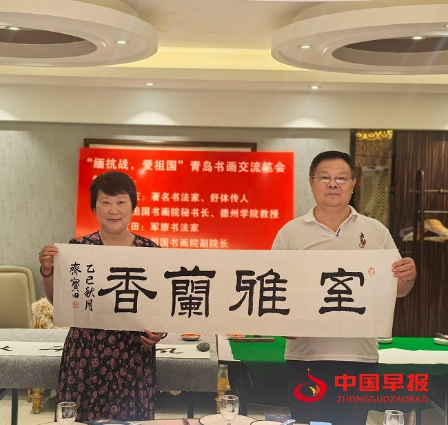 中国早报山东讯(文图:刘太兰) “缅抗战、爱祖国”,这六个沉甸甸的字眼,不仅是对历史的深切回望,更是对家国情怀的深情呼唤。8 月 27 日,海风轻拂的青岛迎来了一场兼具文化温度与精神厚度的盛会 —— 为纪念中国人民抗日战争胜利 80 周年,祖国书画院携一众书画名家与青岛本地艺术家齐聚一堂,一场承载着敬意与热爱的书画纪念交流笔会在此温情启幕,以笔墨为媒,在纸韵书香间重温烽火岁月,共抒爱国豪情。