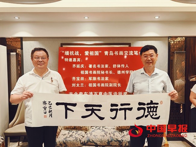 此次活动由祖国书画院主办,青岛李东涛百草中医研究院有限责任公司、市北李东涛百草中医诊所承办。从文化艺术到中医传承,不同领域的力量因共同的家国情怀汇聚在一起,让这场笔会不仅成为一次艺术交流的盛会,更成为一次凝聚人心、传承精神的文化实践。墨香未尽,初心不改,相信在这样的努力下,抗战精神将永远铭刻在人们心中,中华优秀传统文化也将在新时代绽放出更加璀璨的光芒。