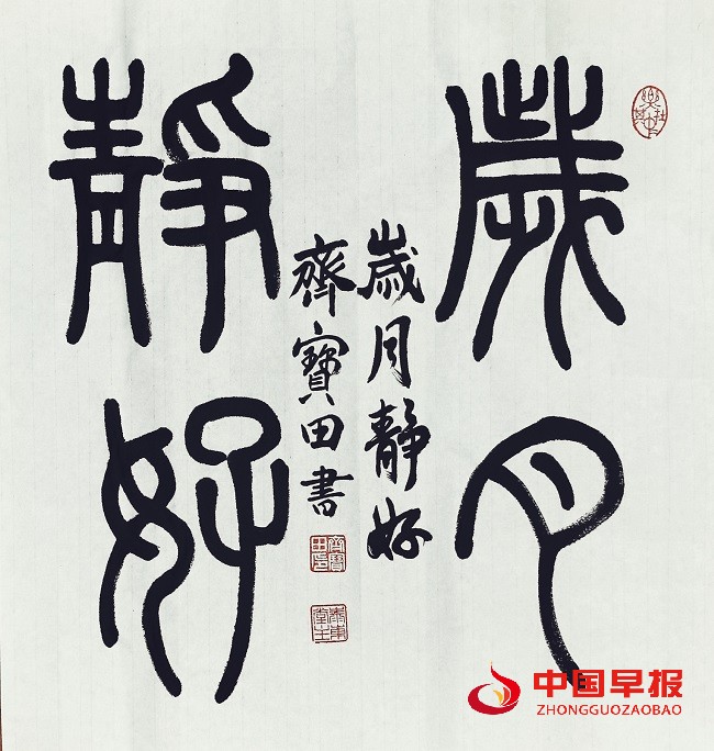 同样引人瞩目的,还有祖国书画院副院长、青岛市书协副主席、军旅书法家齐宝田。一身正气的他,自带军人的刚毅与豪迈,抵达笔会现场后,便毫无保留地与在场艺术家交流创作心得,谈及抗战历史时,他眼中满是肃穆:“每一幅作品都该有灵魂,今天我们提笔,就是要把对先烈的缅怀、对祖国的热爱写进笔墨里。” 话音未落,他便挥毫泼墨,短短时间内,十多幅饱含深情的书法作品相继诞生,“山河无恙”“铭记历史” 等字样力透纸背,仿佛在诉说着那段不屈的抗争岁月,让在场者无不感受到艺术背后的精神力量。