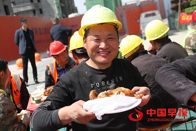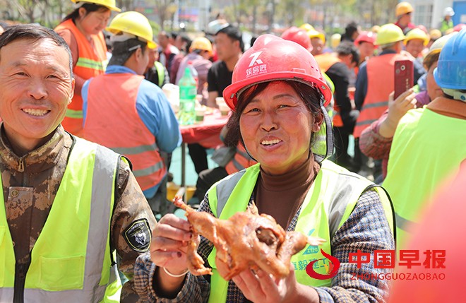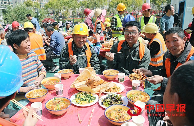 中国早报 河南讯(特约记者 李新义)4月6日,500余位在尉氏县务工外地一线建筑工人围坐在一起,享受着一建筑企业免费供应美味的菜肴,脸上洋溢着幸福和满足的笑容。
