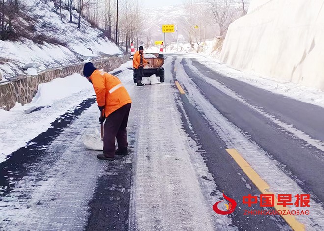 截至当日 19 时,累计出动人员 67 人次,机械 4 台次,皮卡车 2 台、农用三轮车 14 辆。工作人员争分夺秒,撒布融雪剂 57.8 吨,完成 78.2 万平方米、181 公里的扫雪除冰作业,确保所辖干线公路畅通无阻。