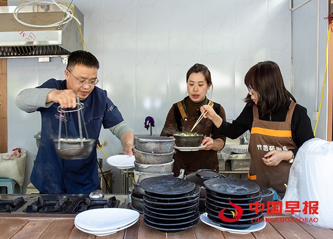 张庄镇摊点郑记古法砂锅已从事此行业已三年,沙锅里配制的肉菜品釆用纯手工制作而成,保持实材的原汁原味,保证食物的营养成份,保证煲汤料的营养成分,汤色清澈,味道鲜美。摊主忙的不亦乐乎。