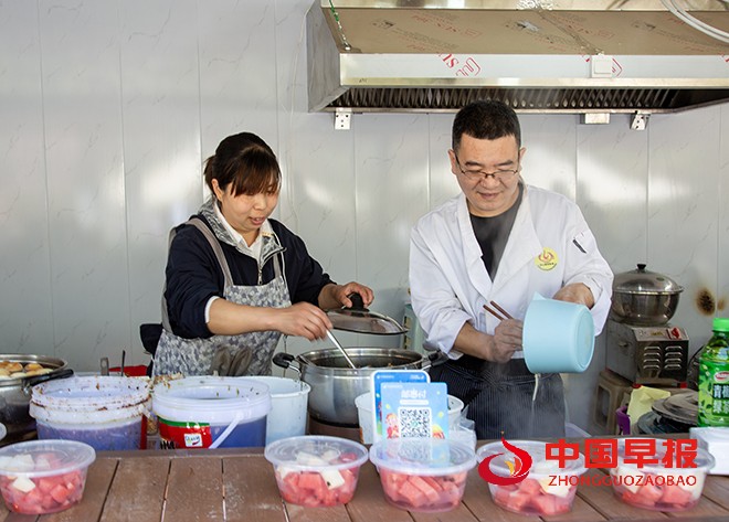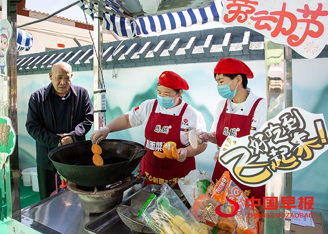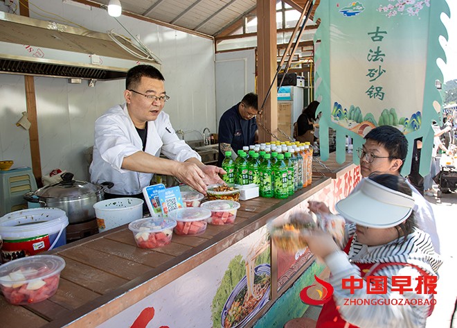 北王镇露露稍子面和江南炸串作为代表小吃在康养小镇摆放摊位。露露稍子面已从事此行业已十余年,面条均为纯手工制作,稍子鲜香味美,深受游客好评。