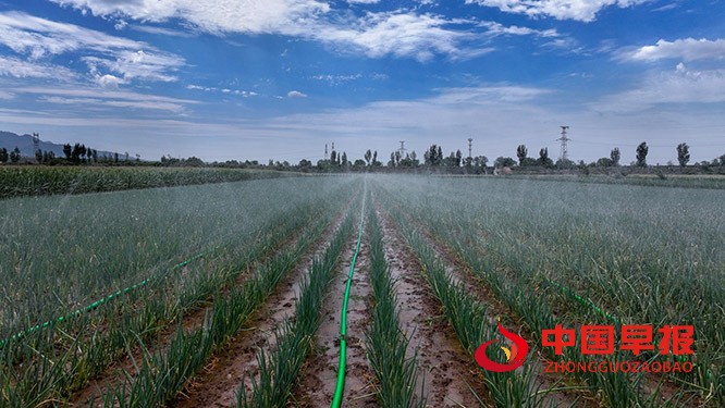 中国早报 山西讯(记者 赵玉虎 特约记者 田红萍)8月14 日,霍州市辛置镇段庄村的200亩大葱种植基地里,骄阳炙烤着大地,却见清泉顺着输水管道奔流而出,化作细密水雾精准洒向葱苗 —— 一场与旱情赛跑的灌溉行动正在这里火热进行。