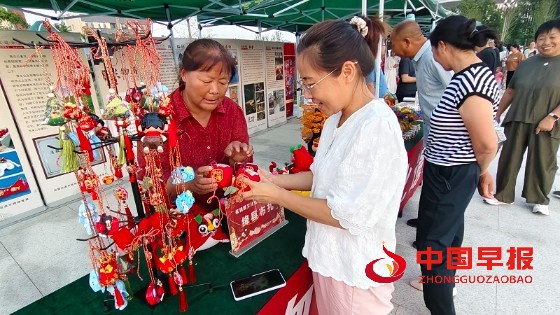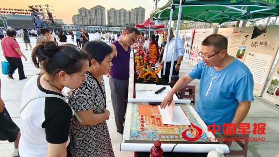 中国早报山西讯(特约记者 张广瑞 陶凌燕) 7月16——20日,绛县市民广场。该县一年一度的消夏文化周在群众的欢声笑语中盛大举行,充满乡土气息与文化底蕴的非遗“盛宴”也借机精彩呈现。清端小米醋、书画字、布扎、尧乡茶制作技艺、山桃核按摩鞋、杨府老酒、餶糘、石子饼、铝丝编织、周氏家谱等众多非遗项目,在绛县文化旅游局组织的“非遗”集市上纷纷亮相、各展风彩,吸引了大批民众逛“街”观赏、体验、选购,为炎炎夏日增添了浓韵的文化氛围和靓丽的风景。