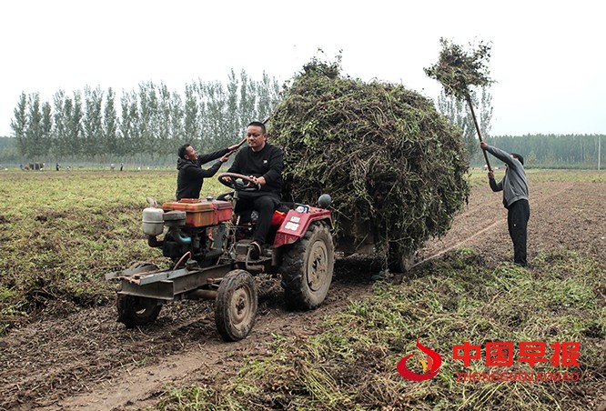 中国早报 河南讯(特约记者 李新义)10月7日,河南省尉氏县邢庄乡的田间地头一片忙碌,村民们趁着天气转晴的有利时机,抓紧抢收成熟花生。