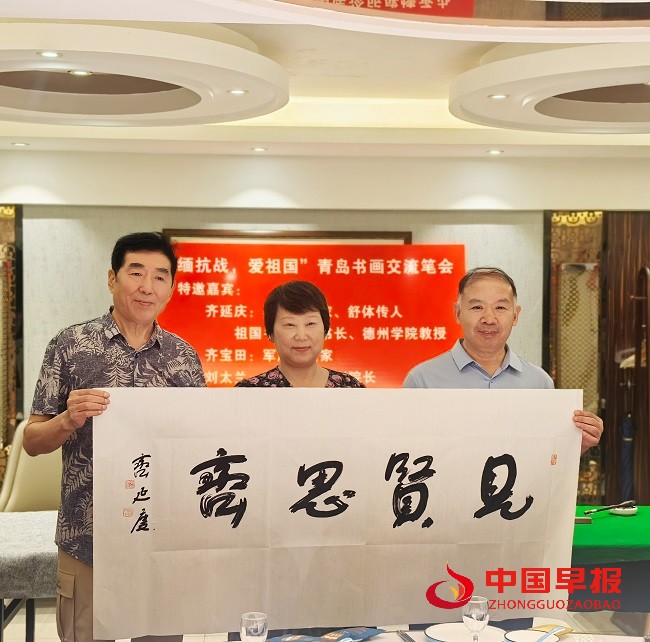 更令人动容的是,著名文物学家、珠宝鉴定专家董文华主任,人民日报山东分社原社长宋学春社长,健康报青岛工作站宋学智主任、著名中医专家李东涛先生等九位文化名人、专家也专程亲临现场。他们虽不是书画创作者,却以观摩者的身份,带着对历史的敬畏、对文化的热爱,静静欣赏每一幅作品的诞生。在与艺术家交流时,宋学春社长感慨道:“抗战精神是中华民族的宝贵财富,而书画艺术是传承文化的重要载体,这场笔会将二者完美结合,既让我们感受到了艺术之美,更让我们重温了初心与使命,意义非凡。”